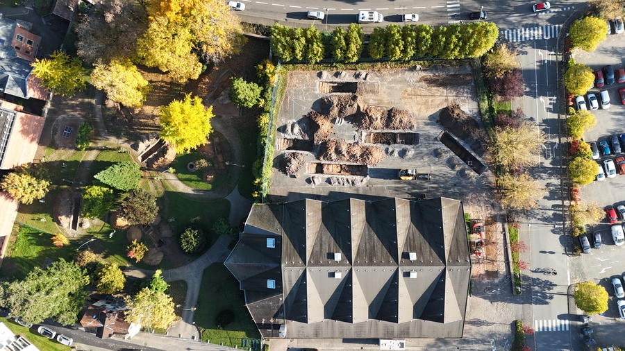 Vue du dessus, mois par mois ou au jour le jour suivant la nature des activités de ce chantier.